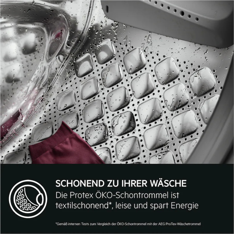 AEG bubanj u obliku saća ima posebnu strukturu jastuka s blago zaobljenim otvorima i rebrima. Vaši tekstili lagano klize kao po tankom filmu vode i stoga se peru nježno i energetski učinkovito uz smanjenu razinu buke.