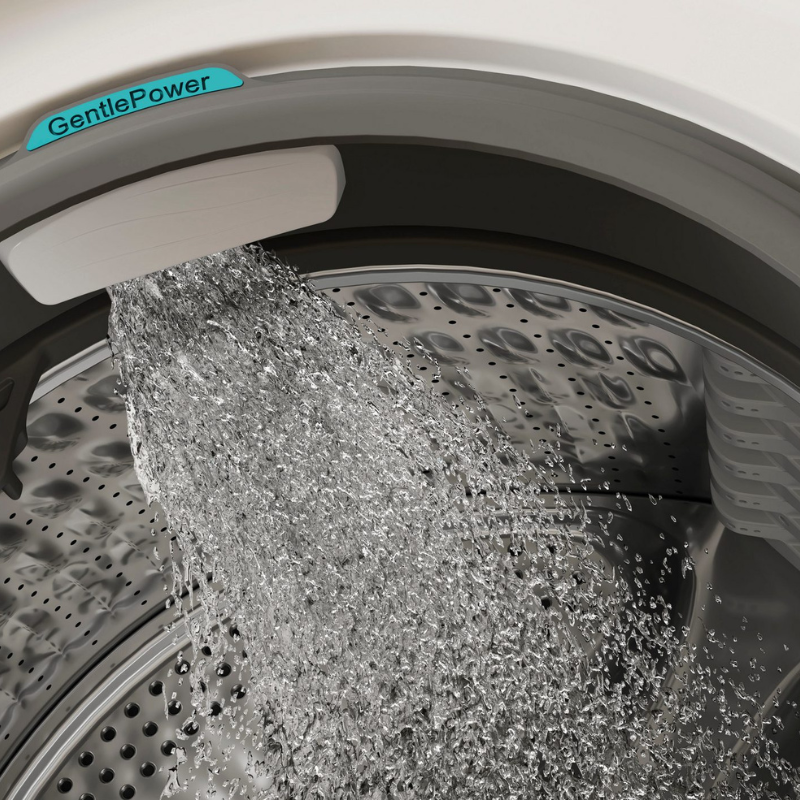 GentlePower tehnologija ravnomjerno raspršuje vodu odozgo, omogućujući snažno i temeljito čišćenje s optimiziranom potrošnjom vode i energije. Besprijekorno čisto rublje uz uštedu energije do 30% u usporedbi s minimalnim zahtjevima klase A.