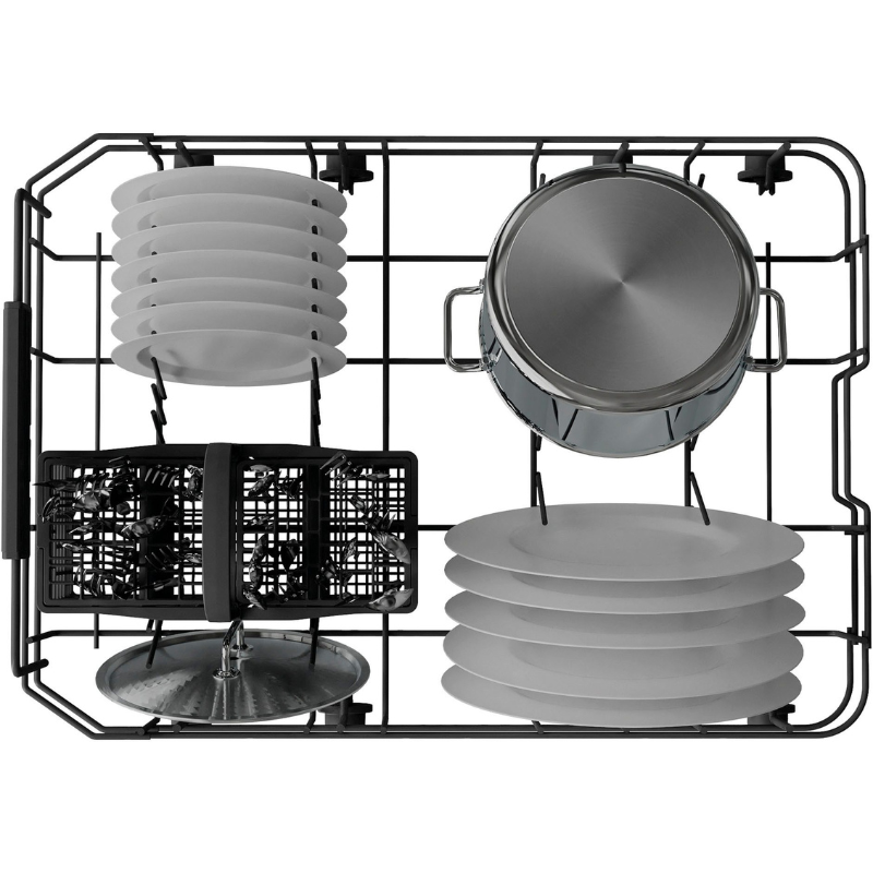 Jednostavno punjenje i pražnjenje pribora za jelo zahvaljujući trećoj ladici. Ladica za pribor za jelo se lako podešava i može se ukloniti. Također je dizajnirana za duže noževe, žlice za kuhanje ili kuhinjski pribor, pružajući dovoljno prostora u svakom trenutku.