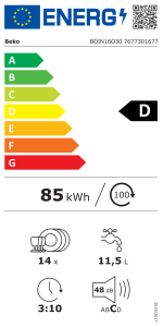 Uz BDIN16O30 7677301677, BEKO nudi potpuno integriranu perilicu posuđa dimenzija 59,8 x 81,8 x 55 cm (ŠxVxD). Kućanstva s četiri ili više osoba imaju koristi od kapaciteta punjenja BDIN16O30 7677301677. 14 posuđa definitivno nudi dovoljno prostora. BDIN16O30 7677301677 apsolutno je pouzdana pomoć iz dana u dan. Oni koji traže visokoučinkovitu i dugotrajnu perilicu posuđa došli su na pravo mjesto.