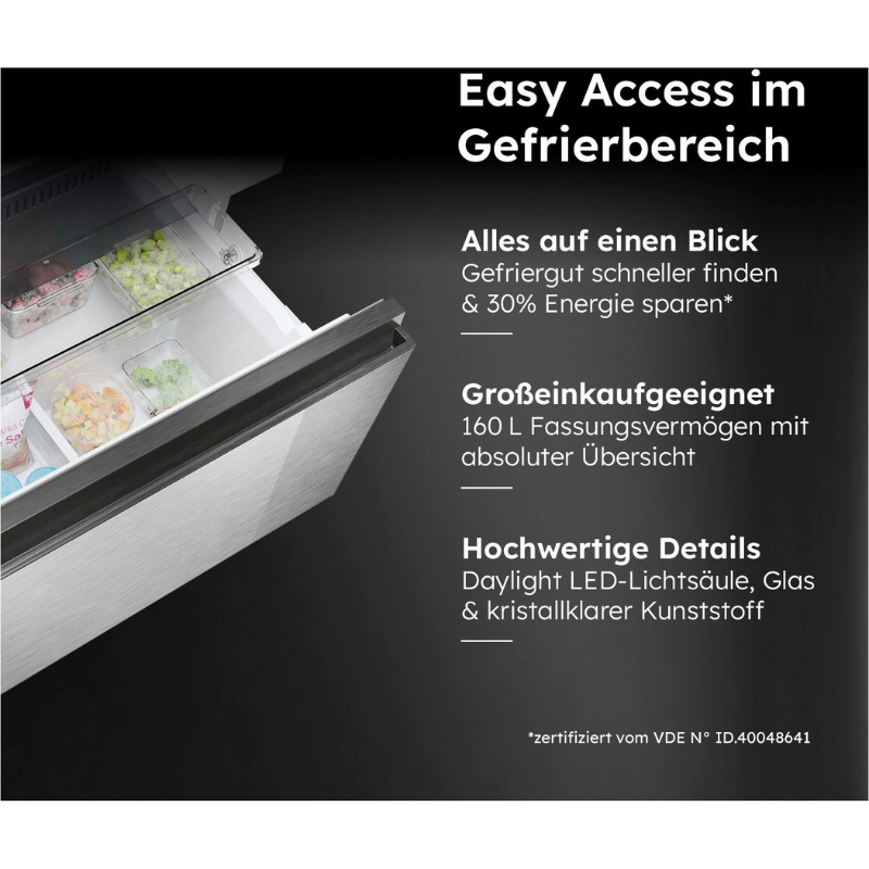 Naši modeli s francuskim vratima nude vrhunsku praktičnost. S ladicom za izravni pristup, pristup hrani je jednostavan i učinkovit, štedeći vrijeme i energiju samo jednom jednostavnom gestom. Zahvaljujući dnevnom osvjetljenju, svaki kutak hladnjaka okupan je mekim, privlačnim sjajem, što dodavanje i vađenje hrane čini gozbom ne samo za oči već i za nepce.