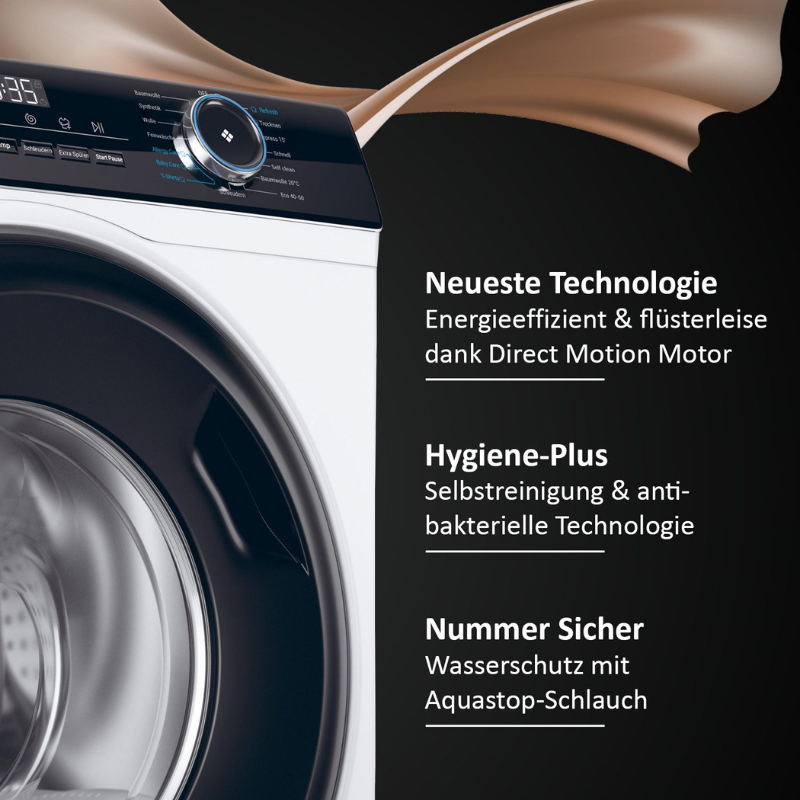„Nevjerojatno tiha, čak i tijekom ciklusa centrifuge“ – to mnogi naši kupci kažu o svojoj novoj I-PRO perilici-sušilici rublja. Razlog je naš inovativni, učinkoviti Direct Motion Motor, inverterski motor s direktnim pogonom koji je razvio Haier. Ovaj motor je izravno spojen na bubanj i stoga ne zahtijeva pogonski remen. To smanjuje buku – doživite novu dimenziju tišine, snage i energetske učinkovitosti.