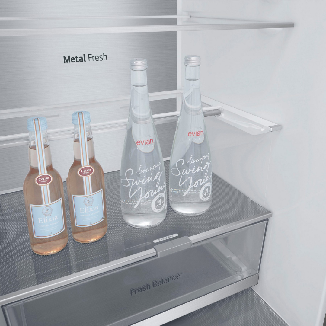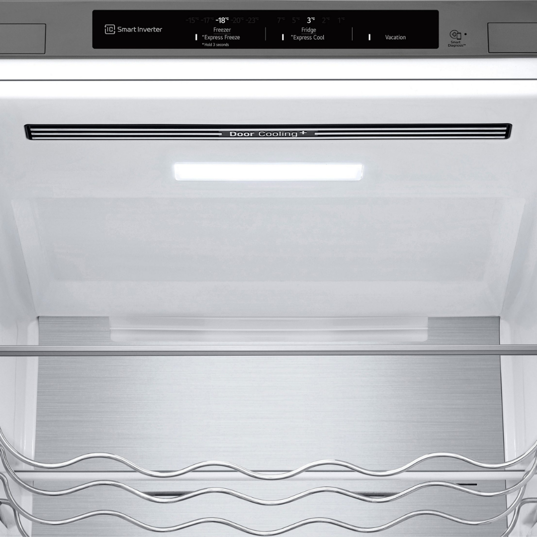 Dodatni otvor za zrak na gornjem prednjem dijelu osigurava brzo i ravnomjerno hlađenje cijelog hladnjaka. DoorCooling+® hladi područje vrata brže od drugih hladnjaka, održavajući vašu hranu svježom trenutačno i dulje. Pića u vratima se nevjerojatno brzo hlade.